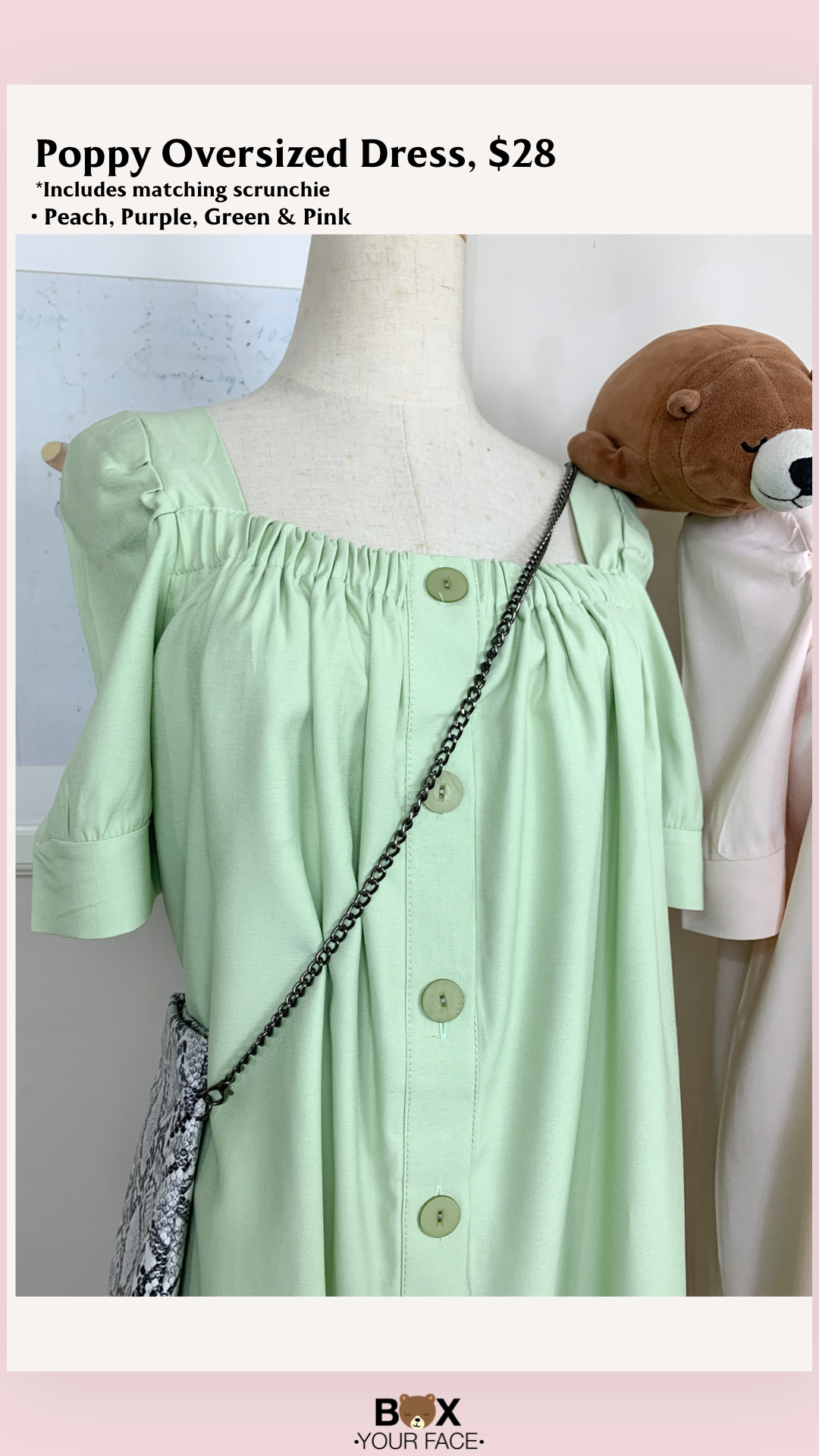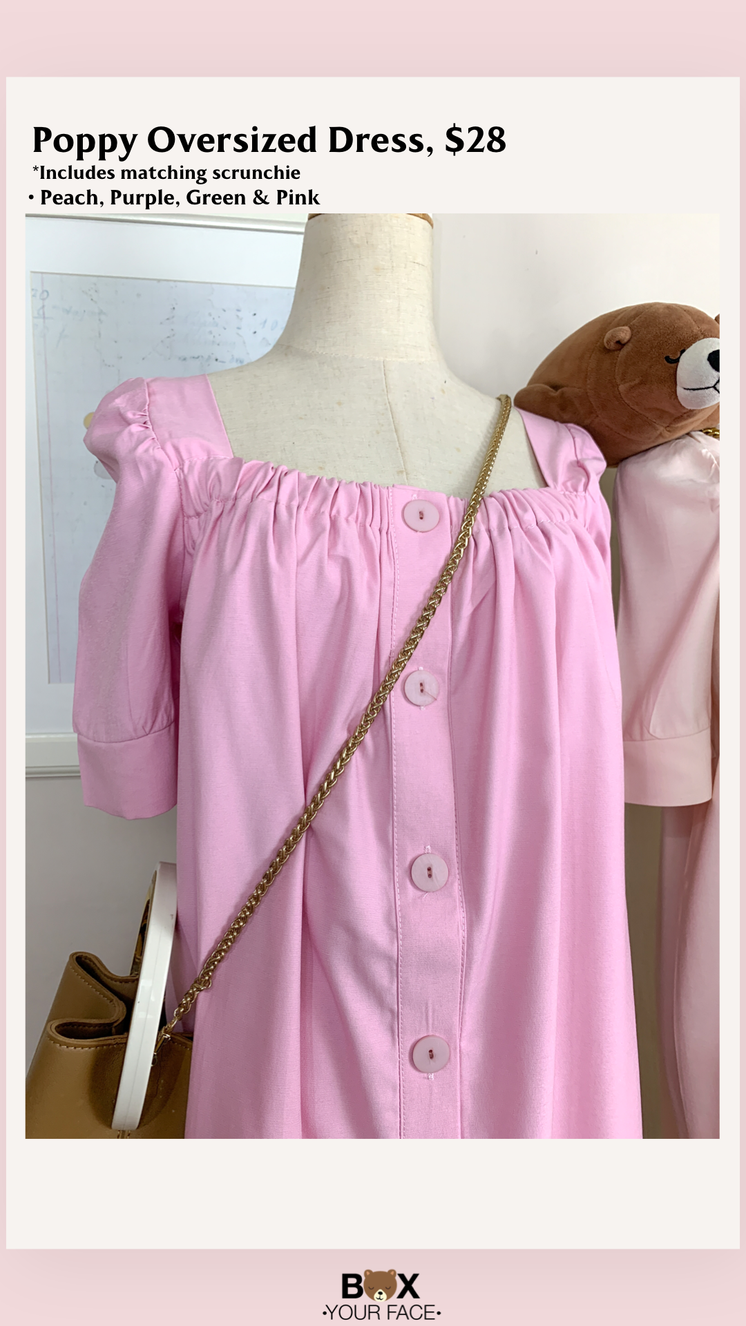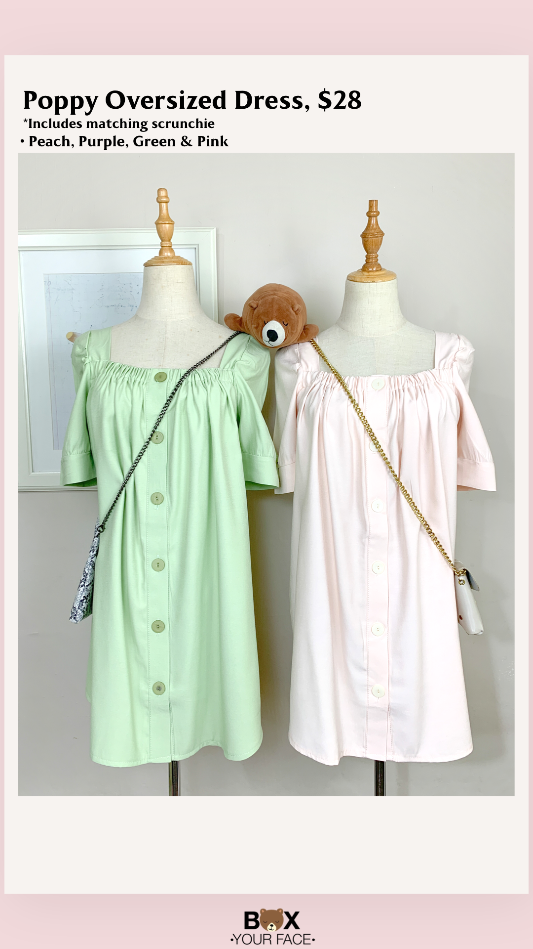 Here's your new go-to dress that is light weight, oversized with a relaxed and roomy feel. Available in macaron pastel colors for a flirty day out!Comes with a matching scrunchie for you to accessorise!